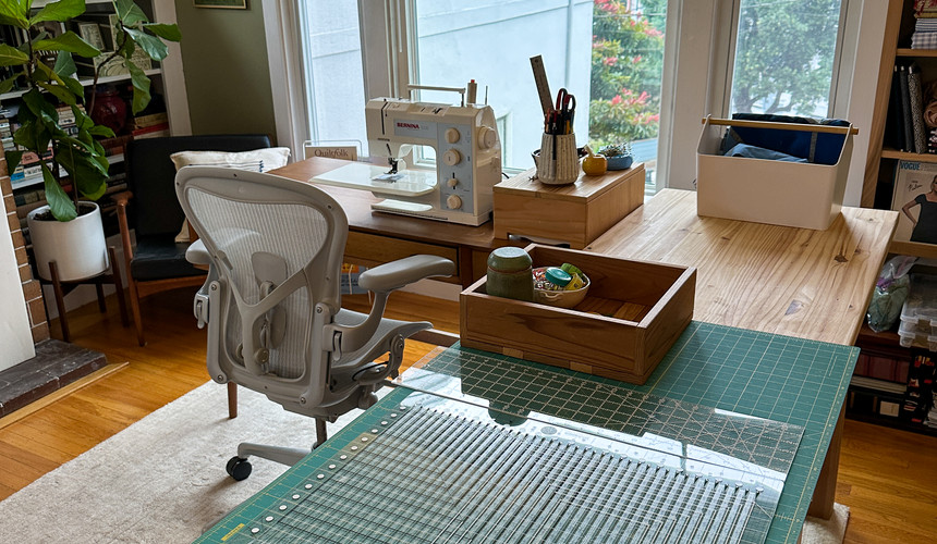 Cutting table accessible from at least three sides. My cutting table used to be blocked by a chair on one side and piles of nonsense on the other. Being able to walk around and approach my cutting from different angles was crucial.
